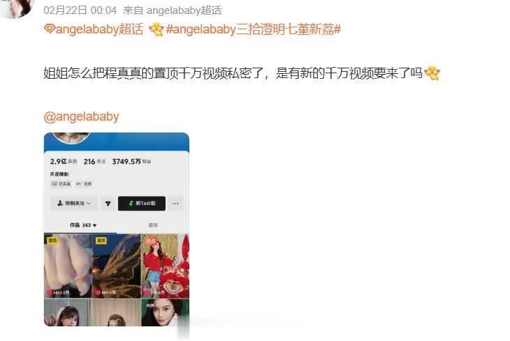 她还时常隐藏并重新置顶这些视频以刷存在感,然而除点赞量外,似乎并无其他亮点。杨颖靠刷视频存在感,缺乏其他亮点。