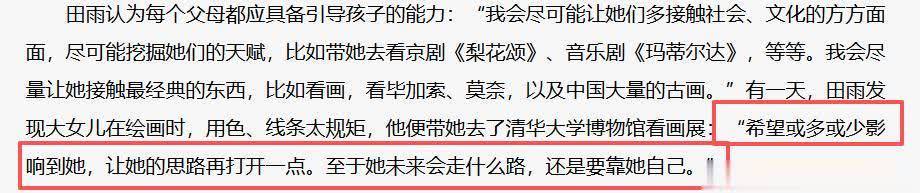 关于育儿,田雨属于天花板级别的。