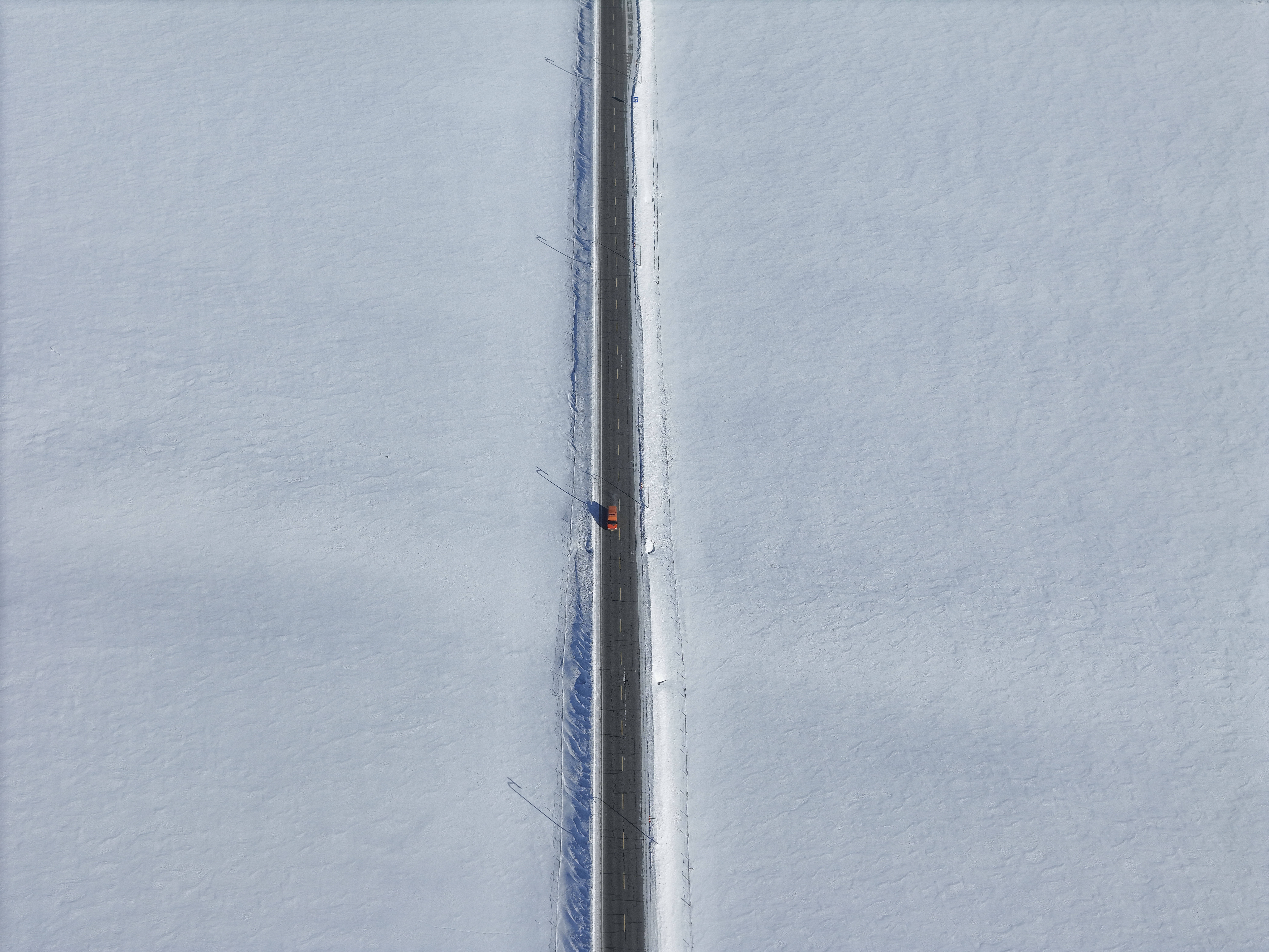 1月17日,车辆行驶在由富蕴县城通往可可托海镇的公路上(无人机照片)。新华社记者 胡虎虎 摄