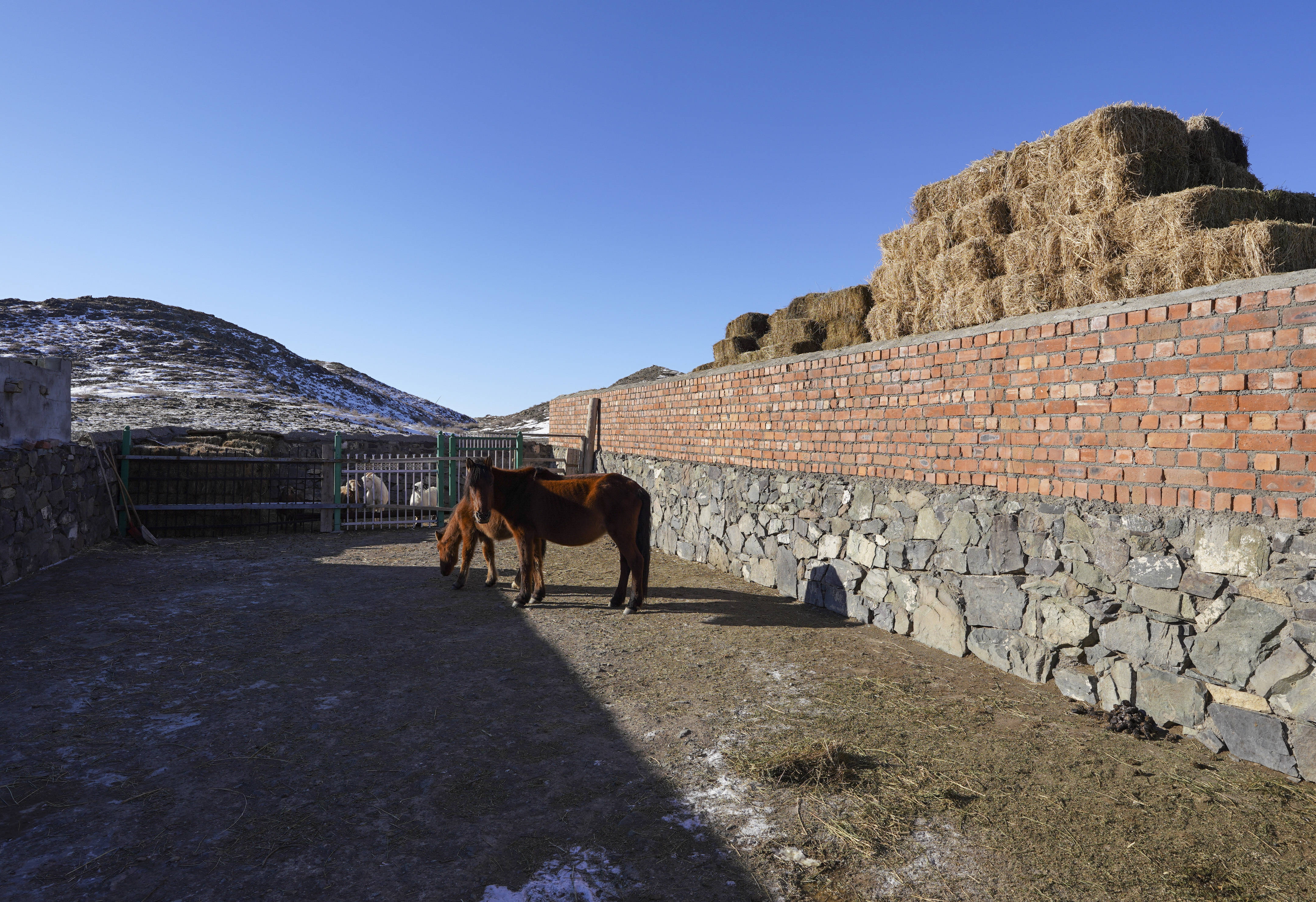 1月16日,吐尔洪乡的村民牵着马走在家中棚圈外。新华社记者 胡虎虎 摄
