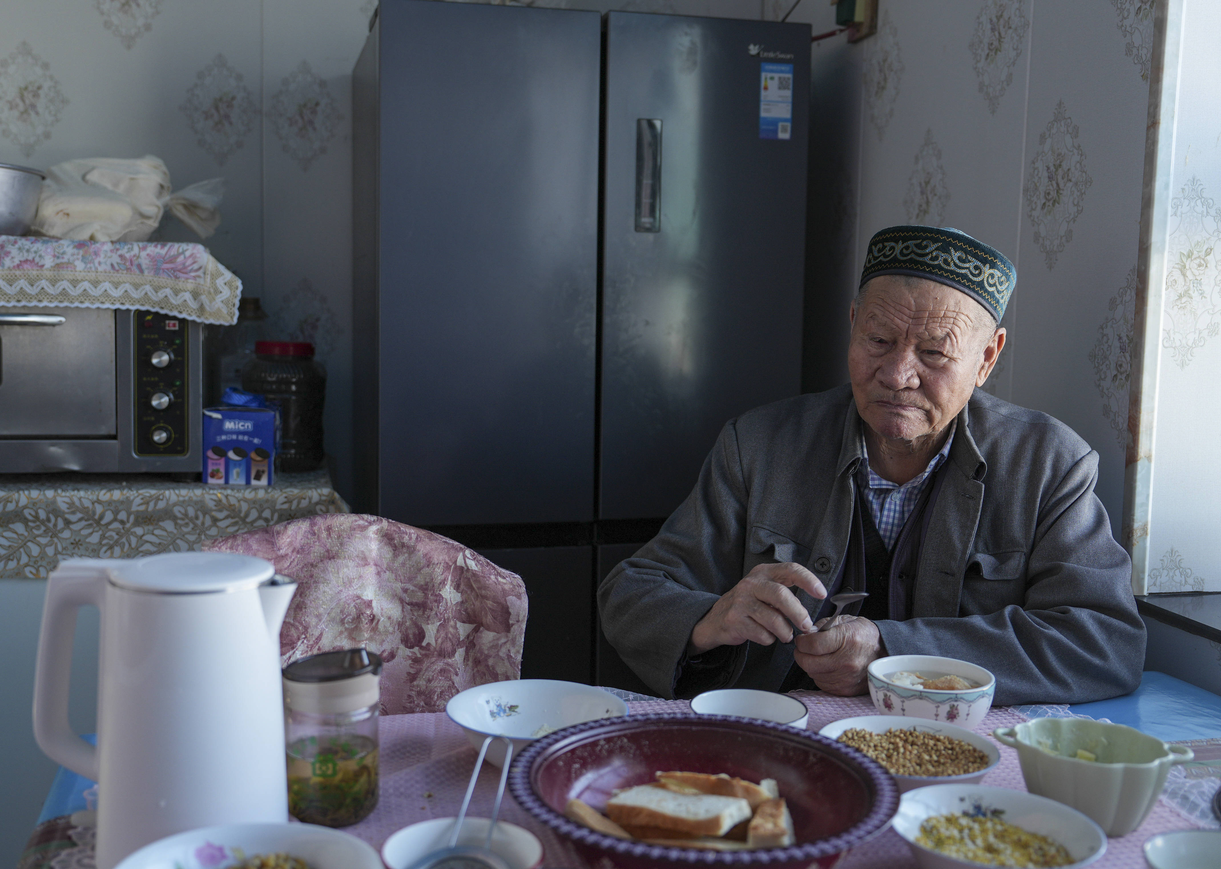 1月16日,吐尔洪乡的村民在家中吃午餐。新华社记者 胡虎虎 摄