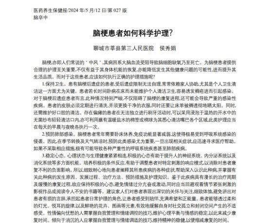 参考资料:[1]侯秀娟.脑梗患者如何科学护理?[N].医药养生保健报长沙配资公司,2024-05-12