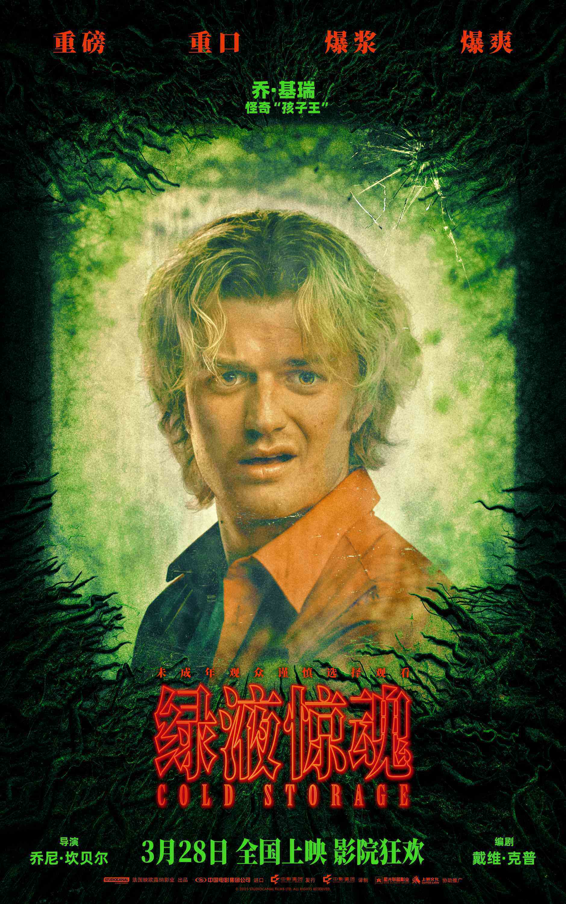 今日,惊悚科幻喜剧电影《绿液惊魂》发布角色海报,极具“精神破坏力”,不仅“重口味”更“辣眼睛”!发霉陈旧的窗户里,外星真菌正在蓄势破窗而出。窗外营救小队的三人表情“难崩”,而各种怪异生物也“疯癫式”露脸,猎奇值拉满。影片由“怪奇孩子王”乔·基瑞、“营救系老爹”连姆·尼森、“求生野蛮人”乔治娜·坎贝尔领衔主演,将于3月28日“引爆”大银幕。