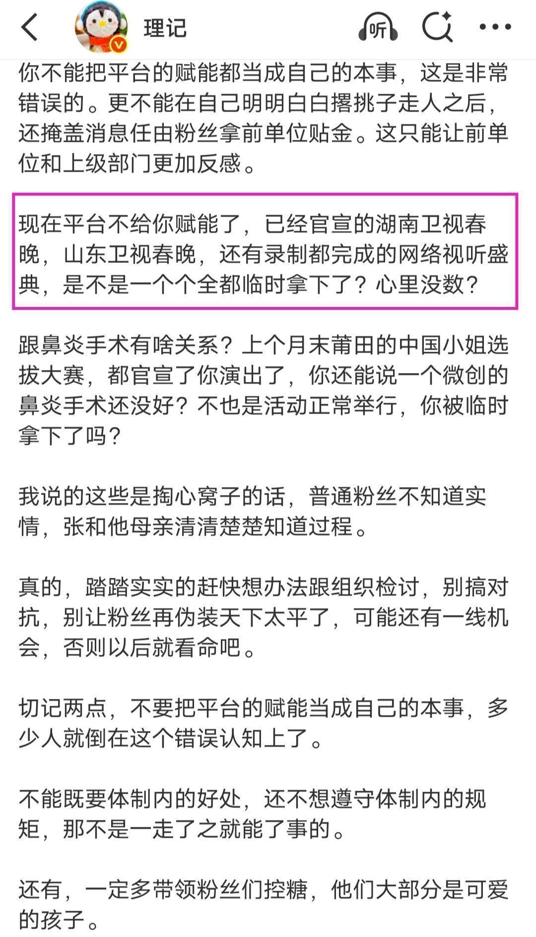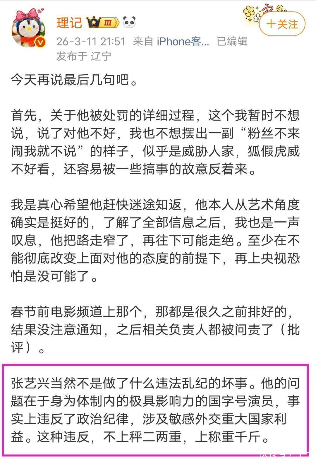 有人发消息说了不同看法。他说张艺兴那事不算藏着,电视台和网站都收到过文件。